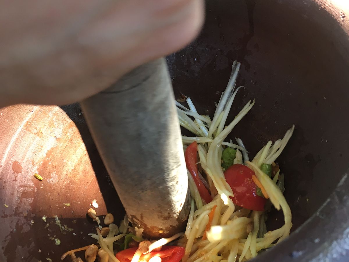 ランチは自分でパパイヤサラダを調味料を混ぜて作りました。