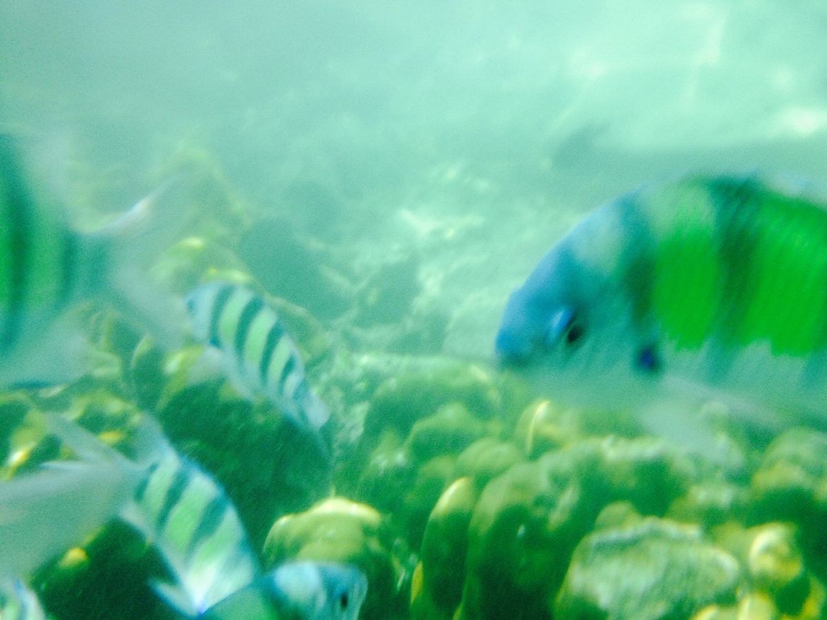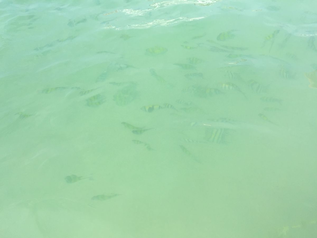 最初のシュノーケリングは、魚がたくさん見れました。人間に慣れているようです。ガイドさんに貰ったバナナを出すとたくさん寄ってきます!