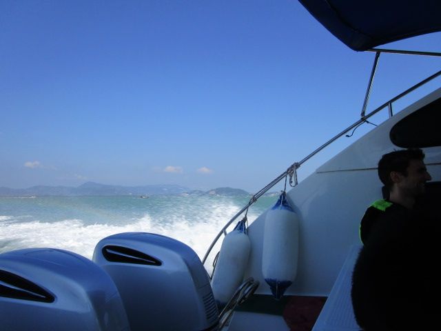 これにより、港への到着は遅れ、1時間以上も我々の到着を待った他のツアー参加者からは白い目で見られ、おまけにスピードボートの席は揺れの激しいフロントしか空いていませんでした。このスピードボートの前の席は想像以上に揺れが激しく、おしりが痛くなりました。さすがに行きだけしか耐えれず、帰りは無理やり船の後ろの席を開けてもらい、座らせてもらいました。船の後部も揺れはしますが、おしりが痛くなるようなことはなく、快適です。