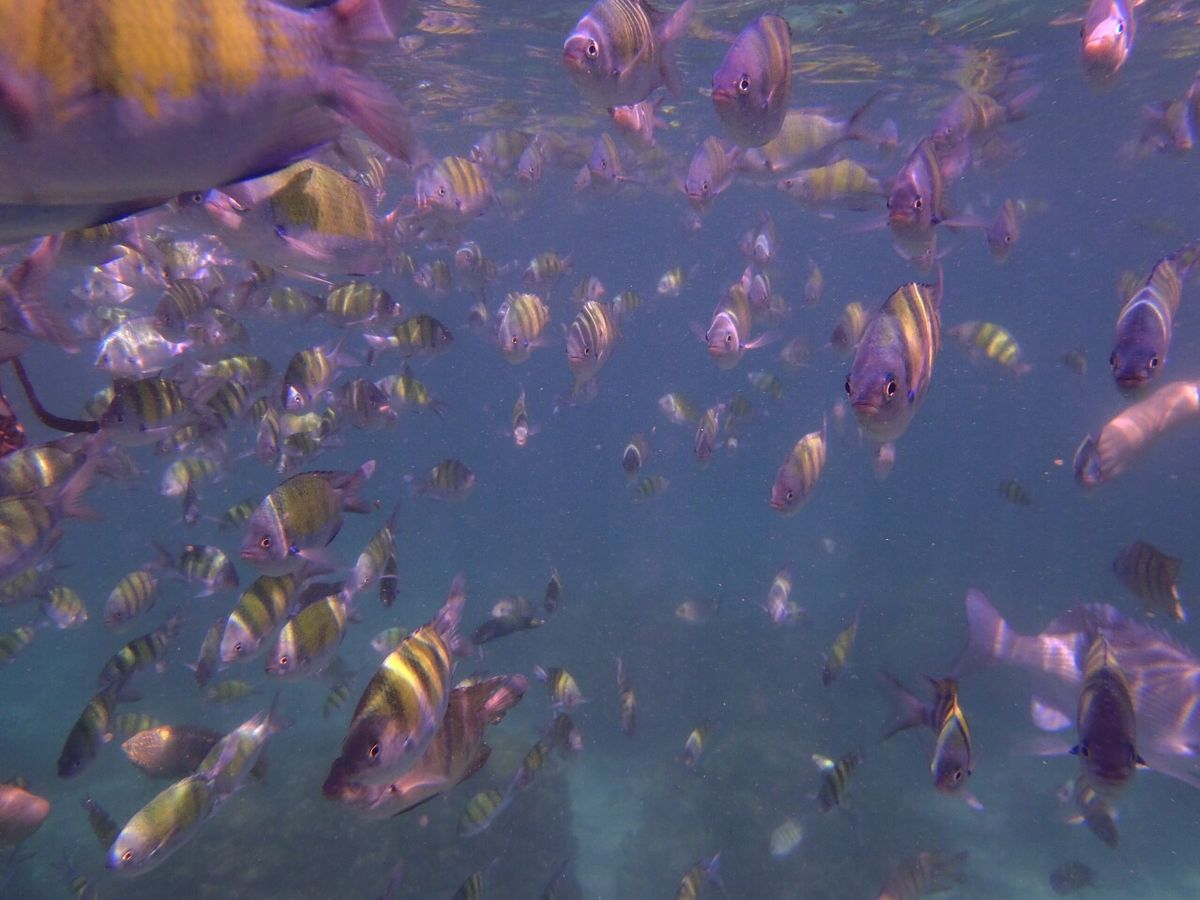 シュノーケルポイントは魚がたくさんいておもしろいです!パンももらえるし!