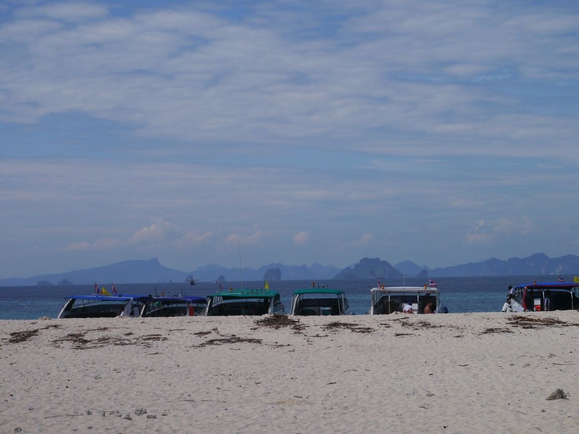 スピードボートでの参加でした。波で揺れると聞いていましたが穏やかで船酔いすることは無かった。天気もよくピピレイ島に上陸できてよかったです。それにしてもボートと人が多かったです。帰りに干潮でボートが座礁しましたが何とか脱出でき、無事にマリーナに着きました。