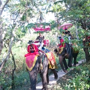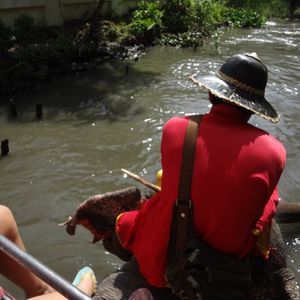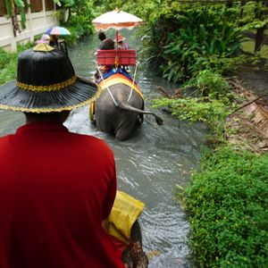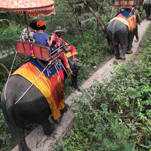 アユタヤ観光とパックになった像乗り体験もありますか、より自然に近い形の象乗り体験がしたくこのツアーを選びました。当然決められたコースではありますが、水路の中を歩いたり森の中を歩いたりと道路をただ歩くだけのコースとは違った楽しみ方を味あわせてもらいました。ツアー会社というより象使いのサービスの問題ですが、一つ残念だったのは、ほかの象使いの人は前後の観光客に像を向かい合わせて互いに写真撮影のサービスをしてくれていたのですが、わたしの乗った象使いの人はそのようなサービスをしてくれませんでした。併せてツアーに含まれている水上マーケット体験も楽しく参加させて頂きました。