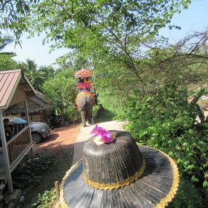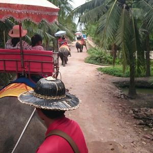 途中で立ち寄ったココナッツファームはトイレ休憩を兼ねたもので、こじんまりした見学でしたが、日本では見られない光景で興味深く、個人的には以前ベトナムの島で見たものとも違い面白かったです。象乗りアドベンチャーはリトルワールドのような遊園地にあり、象やワニのショーも楽しめます。私達は象のショーを見ましたが、改めて象の賢さや巧みなダンスや技に感心しました。お待ちかねの象ライドはきれいに整備された自然の中を20分以上かけて揺られていくので、なかなかいいですよ。水の中にも入るのでちょっぴりスリリングです。象さんには是非感謝の声掛けを。ダムヌンサドゥアック水上マーケットは2回目なので、手漕ぎ船のあとはマンゴーを食べてゆっくりしていました。タイに来たなぁ~と実感できる郊外のツアーですね。お勧めです。何より感心したのは、ガイドのガイさんがとても素晴らしい案内をしてくださったこと。優秀で細やかな気遣いのできるガイドさんに会えてラッキーでした。お世話になりました。
