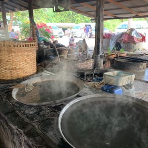 ココナッツファームでは、私たちが連れていっていただいた場所はココナッツから取れた液体を煮詰めて砂糖にしているところが少しあっただけで、あとは観光客向けのお土産売り場があるだけでした。写真で載っているような、ココナッツの木がたくさん栽培されているところに行けてココナッツジュースが飲みたいなと考えていたので、少し残念でした。