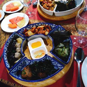 大きなショッピングモールの中のお店です。デパートやショッピングモールに寄る旅程にはしておらず、思いがけなく入ることになりました。経験できたことに感謝です。お料理はコースで量が多く、ソンブーンだけだと思っていたので次から次へと出てきてびっくりしてしまいました。何より、このショッピングモールというかデパートというかが広すぎて、ツアーが終わったら寺院に1つくらい行こうと考えていたところ、施設内をくまなく巡ろうと切り替えてしまったくらいです。文字通りお腹いっぱい、ショッピングもお腹いっぱいで満足です。