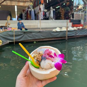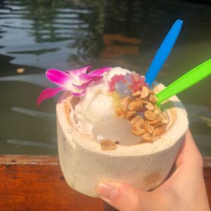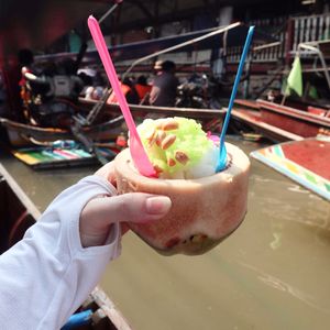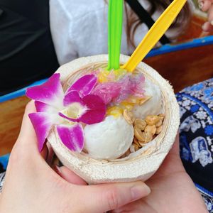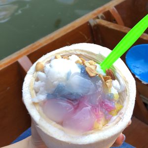 水上マーケットではココナッツアイスを食べました。甘すぎなくて、トッピングのナッツと相性バッチリでした