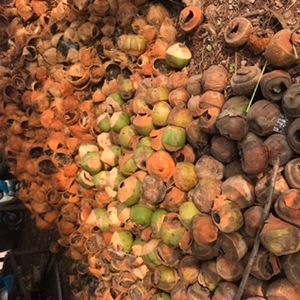 集合時間は6:40とすこしはやかったですが、象のキャンプまで1時間半ほどかかるらしくしょうがないかなと。最初にココナッツファームに行きました。特にココナッツの木があるわけでもなくお土産屋さんとトイレ休憩のために立ち寄った感じ。