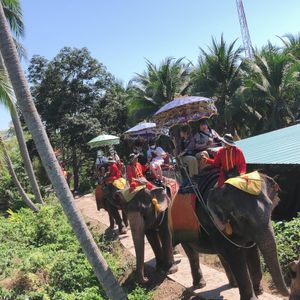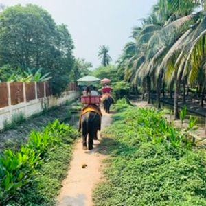 象のり体験は2人で一頭の像に乗るので奇数グループだと1人溢れます。コースの途中で水の中に入るので少しスリルがありますが、とても楽しいです!象が歩くたびにかなり揺れるので写真を撮るのは難しいですが禁止はされてないです。象のり体験が終わったら1人20バーツがチップとして必要です。