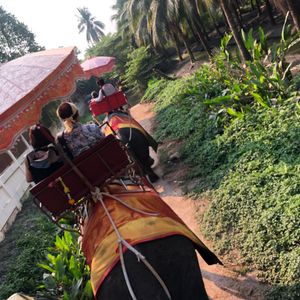 この2つの組合せのツアーを探していました。どちらも内容が充実していて楽しかったです。5歳と1歳の子連れでしたが子供たちにも良い体験となりました。象乗り体験は、1歳の子は抱っこ紐を前向き使用して乗りました。行きに事故渋滞に巻き込まれ、帰りが3時近くになり、昼食なしにしていたので、お腹がペコペコでした…