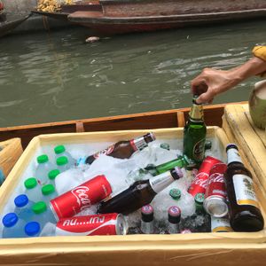 水上マーケットでのボートは別料金で、特に強制ではありません。私たちの参加したツアーでも乗らない方が数名いらっしゃいました。水上マーケット自体はそこまで大きくないですが、ボートに乗ってココナッツアイスを食べるのはいい思い出になると思います。船の上でアイスを作ってくれて商品とお金をやりとりする、というのが日本にはない文化なので新鮮で楽しかったです。(アイスは70バーツくらいでした)
