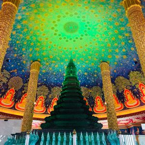 バンコクから車で1時間半、チャチューンサオ県にあるワット・サマーン・ラタナーラームは、巨大なピンク色のガネーシャ像で知られる寺院です。このガネーシャ像は全長約16メートル、高さ約24メートルと圧倒的なスケールを誇り、横たわる姿が特徴的です。ガネーシャはヒンドゥー教の神で、知恵や成功、障害を取り除く神として信仰されており、多くの参拝者が願掛けやお祈りに訪れます。ピンク色のガネーシャ像は、その鮮やかな色彩とユニークなデザインが目を引き、SNS映えするスポットとして人気です。寺院内には他にもカラフルで個性的な仏像やヒンドゥー教の神々の像が多くあり、多彩な撮影スポットが点在しています。ガネーシャ像の足元にある小さなネズミ像に願いを伝えるユニークな儀式も話題となり、観光客の注目を集めています。 VELTRAでは、バンコクからの格安往復シャトルや日本語ガイドが案内する半日ツアー、バンコクの他のフォトジェニックスポットと組み合わせた1日ツアーなど、多彩なライトアップを取り揃えています。