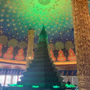 ワットパクナムは宇宙空間のような天井画が絶景です。他にも歴史を物語る展示品もあり、じっくり観光すると知識が豊かになります。パワースポットとしても、何か力を与えてくれそうな場所でした。観光後、バスを待っている間にガイドさんが屋台で買ってくれたバナナの天ぷらは、今回の旅行中で一番美味しかったです。