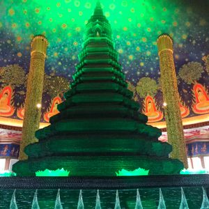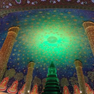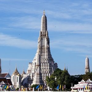 ワット・アルン(通称:暁の寺)は、バンコクのチャオプラヤ川沿いに位置するタイを代表する寺院の一つで、ワットプラケオやワットポーと合わせてバンコク三大寺院と呼ばれています。その名前の通り、朝日を浴びて輝く姿が美しく、特に日の出や夕暮れ時の景観は圧巻です。高さ約70メートルの中央の仏塔(プラ・プラーン)は、陶器の破片やカラフルな装飾で覆われており、細部まで精巧に作られたデザインが訪れる人々を魅了します。 ワット・アルンでは、仏塔に登ることができ、上からはチャオプラヤ川やバンコク市内の絶景を楽しむことができます。また、夜にはライトアップされ、幻想的な雰囲気を醸し出し、写真映えするスポットとしても注目されています。