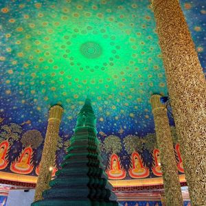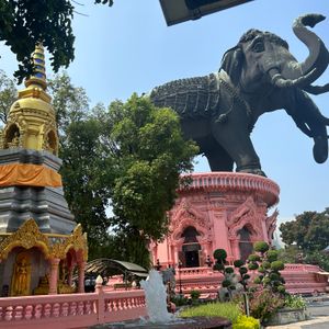 バンコク郊外に位置するエラワン博物館は、巨大な三つ頭の象の像で知られるユニークな観光地です。この象の像は高さ約43メートル、重さ250トンにも及び、遠くからでもその圧倒的な存在感を放っています。博物館の内部は3つのフロアに分かれており、それぞれが仏教やヒンドゥー教の宇宙観を表現しています。特に、ステンドグラスの天井や精巧な装飾が施された内部空間は、訪れる人々を魅了しています。