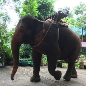 象と触れ合えるとワクワクとした気持ちで参加したツアーでしたが、象に対する扱いが余りにも酷くて悲しくなりました。象使いを含めた大人4人を乗せ、狭くて急な山道を下らせたり、お腹の上まで浸かるような川を流れに逆らって歩かせたり、立ち止まる度に叱責し時には鎌のような刃物で叩いたり、終点まで来ると又休む間も無く次の観光客を乗せて出発します。これだけでも涙が出るような体験だったのですが、後で調べたら、タイでは象を観光資源として利用する為に、仔象の頃に狭い檻に閉じ込めて手足を縛り、水も食物も与えない、眠らせない、一週間余も拷問の限りを尽くして虐待し、生きる意欲を奪い、死ぬまで言うことをきかせるということが行われているのだそうです。胸が締め付けられる思いです。知らなかったとはいえ、象に対する虐待に加担してしまいました。
