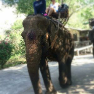 象乗りは前日アユタヤでも経験していましたが、アユタヤの象よりもふたまわりくらい大きく、より重厚感を感じられました。また、頭の上(象使いがのるところ)にも乗せてくれるため、二日連続でも全く飽きはこないです。
