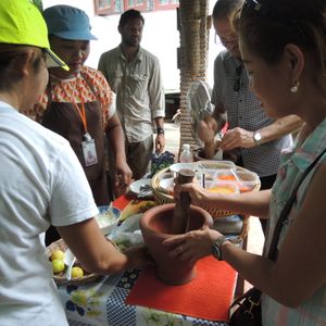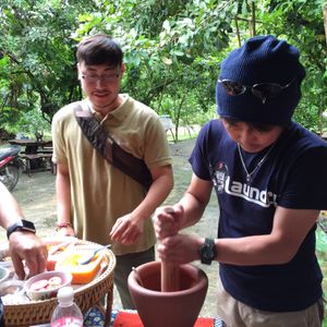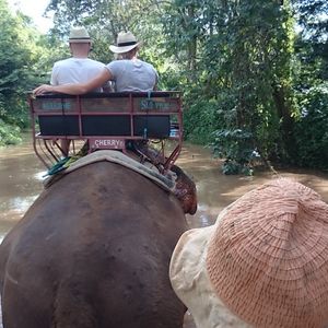 このツアーはタイの自然を存分味わえる充実した1日でした。まずは市場へ、普段見かけるような事がない食用カエルやカエルの炒め物が売っていましま た。挑戦したかったのですが勇気が無く後で後悔してしまいました笑。次に皆でランチ作りでパパイヤサラダと空芯菜を作りました。空芯菜を炒める時の炎で皆おお盛り上がり!ちょうど料理教室にも興味を持っていた為に一石二鳥で楽しくタイ料理作り体験ができました。トレッキングでは迫力満点の滝が見れました!想像していた以上にでかくダイナミックで水しぶきもすごく、いっぽ間違えると引きずり込まれそうですごかったです。ぞう乗りではぞうの頭に直接のれたりとても貴重な体験が出来ました。普通では体験出来ないのでとても値打ちがありました。期待してた以上に全部がパーフェクトでした!ガイドさんもとてもフレンドリーでとても素敵な方でした。このツアーはほかのツアーよりも1番おすすむめ出来るツアーだと思います!!