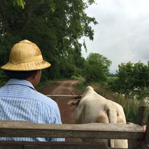 帽子を持ってない人様に傘帽子を貸してくれて、大自然の中牛車体験が出来、牛と写真撮ったり、まったりした時間を楽しめました☆