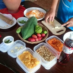 そこにソムタムと空芯菜の準備がしてあり教えてもらいながら調理しました。