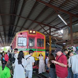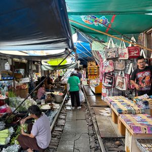 メークロン市場は早めに着いたため市場をじっくりと見て回ることができました。電車が通過するさいには間近で見れたのがすごく良かったです。