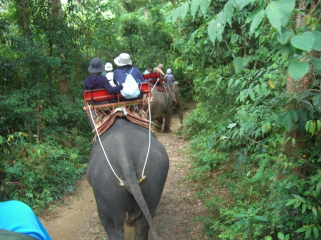以前万国に旅行に行ったときにも象に乗りましたが、平坦な道を10分位歩くだけのものだったので、今回はジャングルの中を象に乗って歩けるということで、参加してみました。