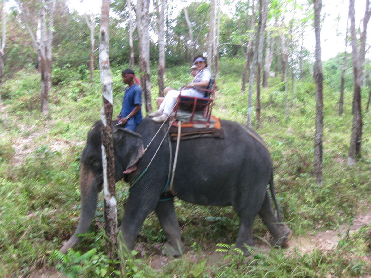 ジャングルの中に入ると象使い?のお兄さんから一つの提案があります。「手持ちのカメラで僕が写真をとってあげる。でもそのかわりチップが欲しい」と。いいよ。と快諾するとお兄さんは象から降りいろんな角度から写真をとってくれました。そして象の首のところに乗ってごらんよと勧めてくれ象さんの首のところにまたがり写真も撮ってくれました。