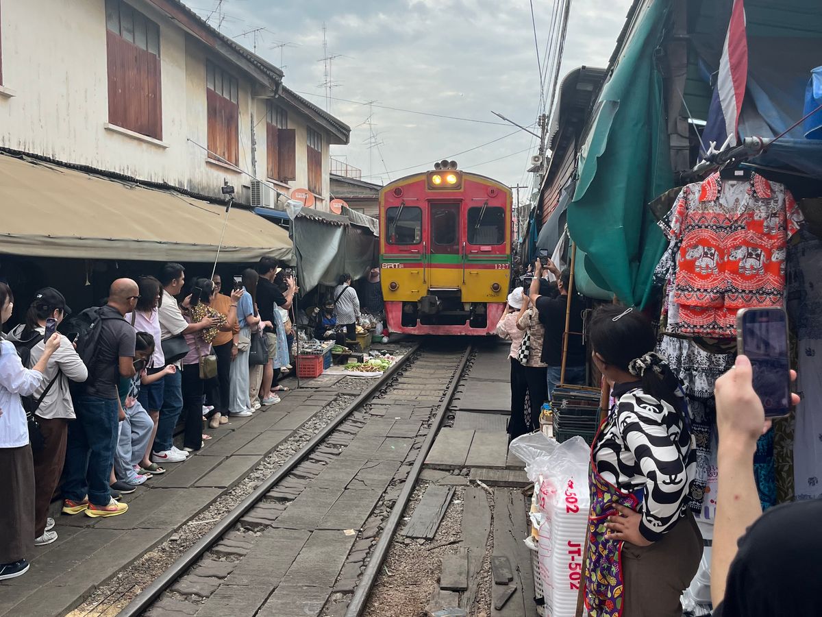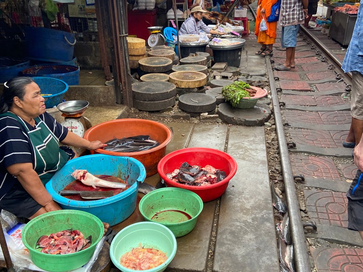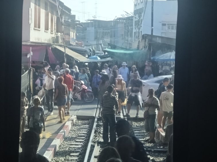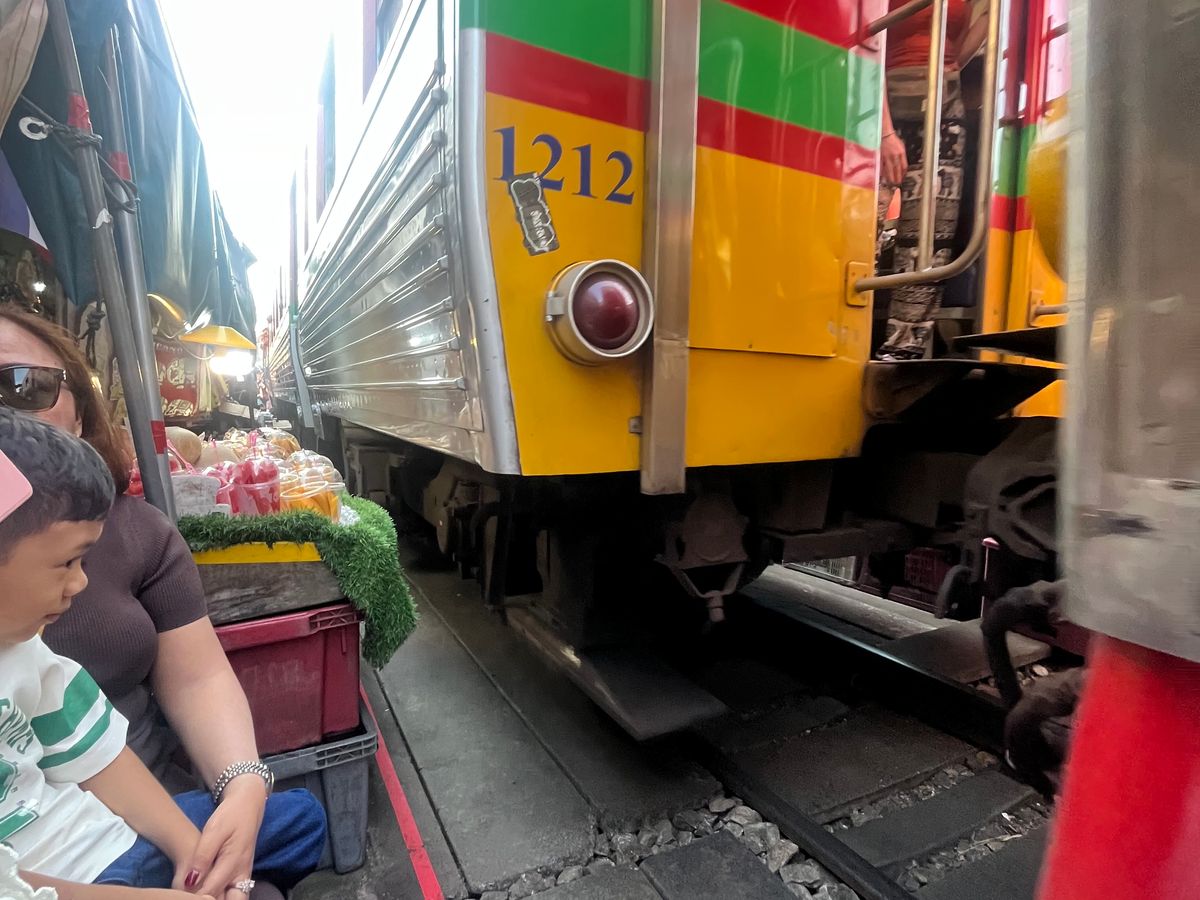 電車があんなに近いとは‼️市場の動きの素早さもビックリです。