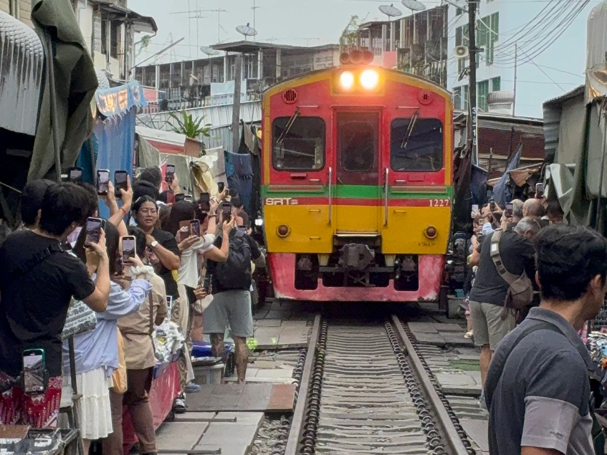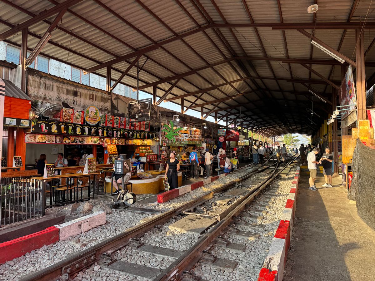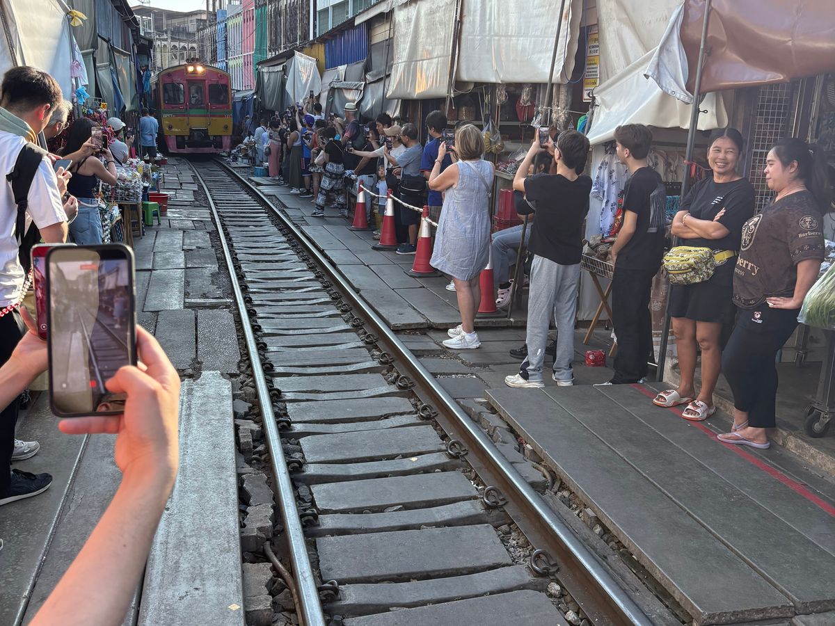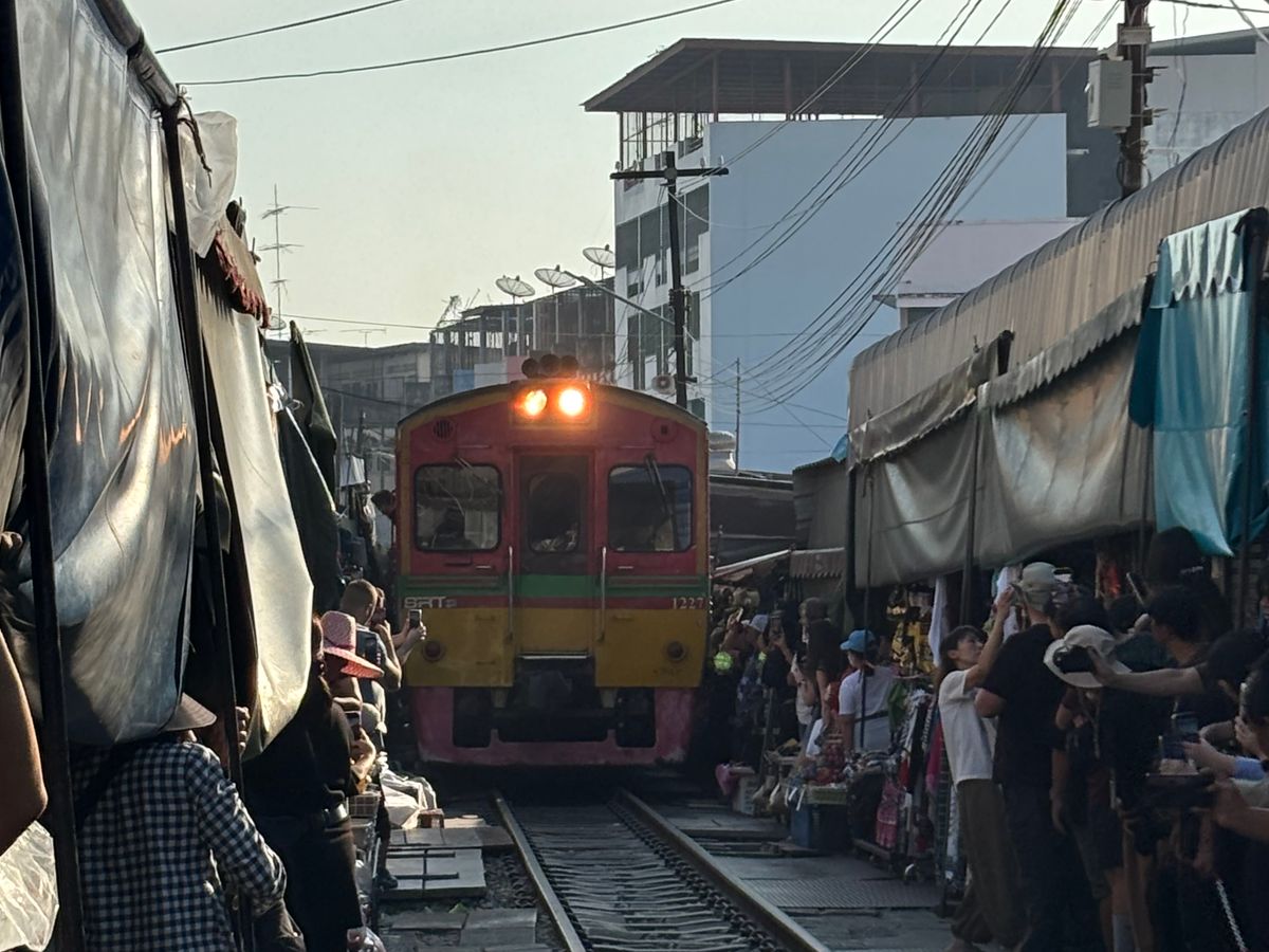 電車があんなに近いとは‼️市場の動きの素早さもビックリです。
