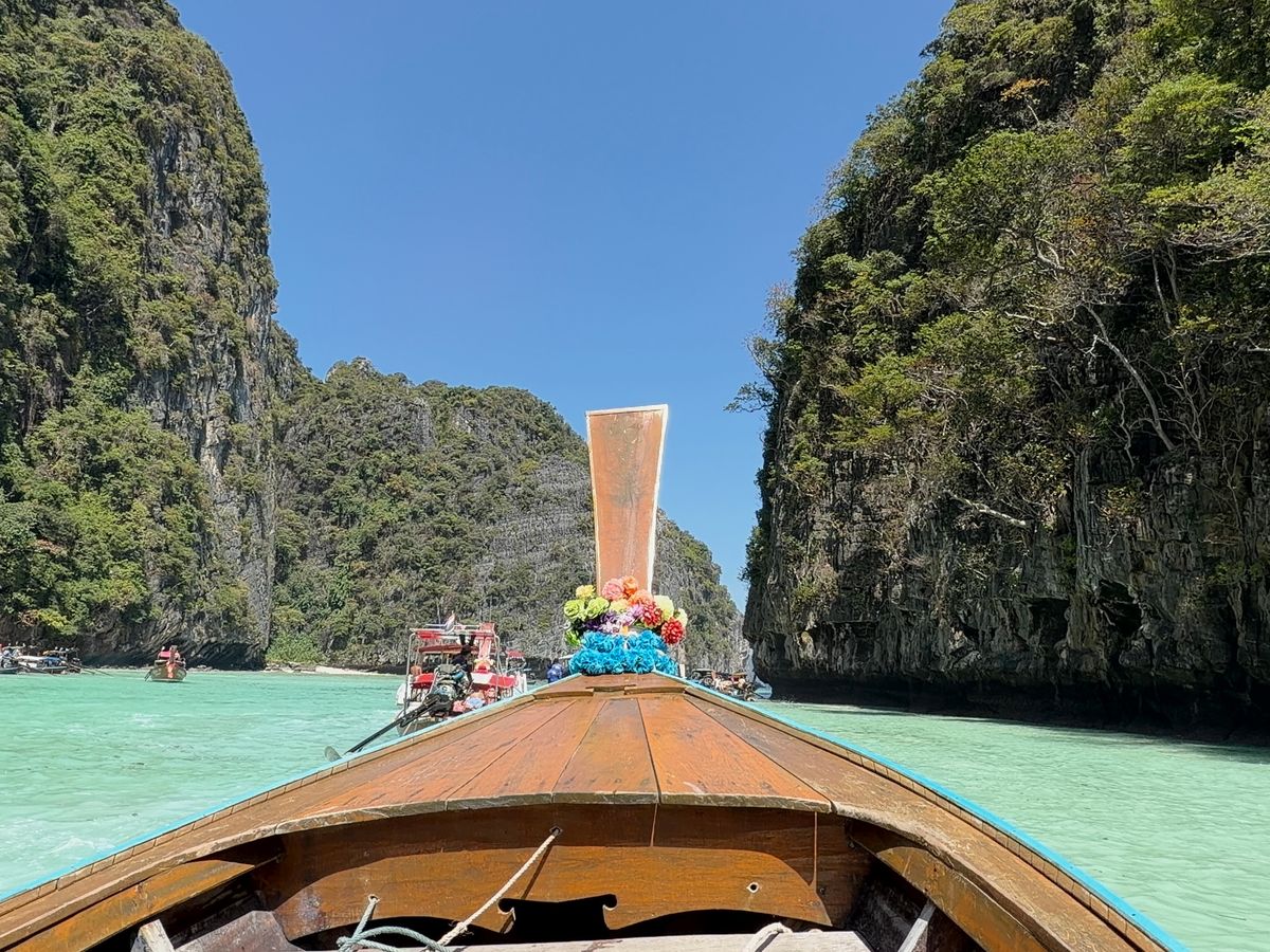 船から見るアンダマン海は本当にエメラルドグリーンで、映画『ザ・ビーチ』のロケ地にもなったマヤベイの景色は写真映え抜群でした。