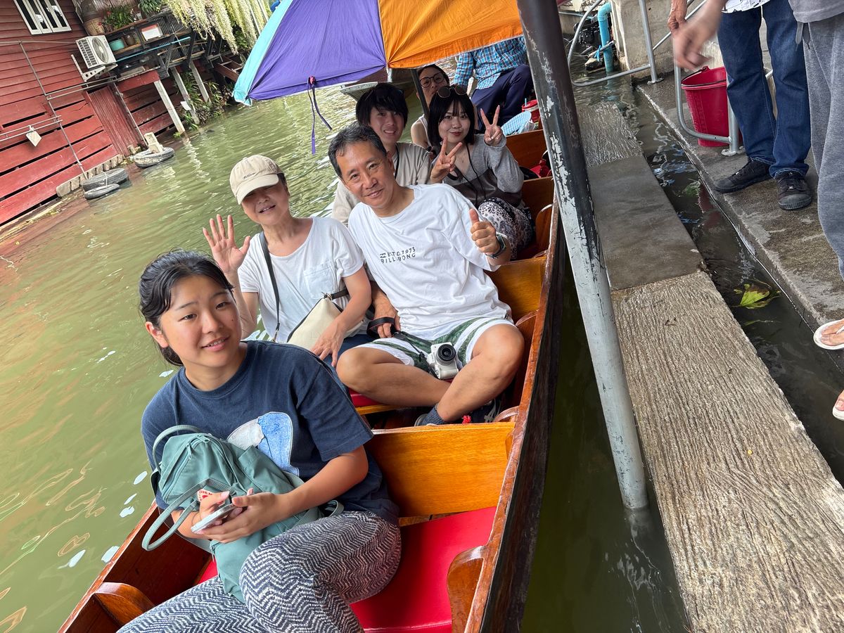 一番記憶に残っているのは水上マーケットへ向かうスピードボートです!そこから見える風景が「海外旅行に来た!」という感じで最高に楽しかった。マーケットでの価格交渉も、妻がタイ語とパッションでノートを半額以下まで値切るなど、めちゃくちゃ盛り上がりました。船のふちに手をかけていて店主に怒られたのも、今思えば「危ないよ」という優しさだったんだなと。小舟で食べたヤシの実アイス(もち米入り)も新感覚で本当におススメです。