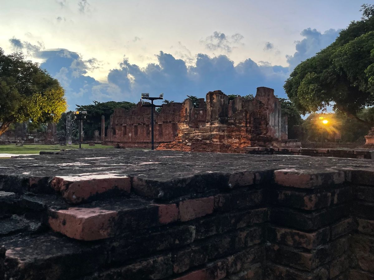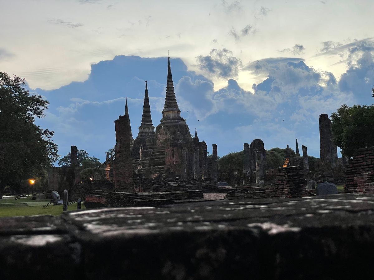 アユタヤのライトアップ、もう少し暗くなってから見たかったです。あと15分くらい遅ければもっと綺麗に見れたと思います。