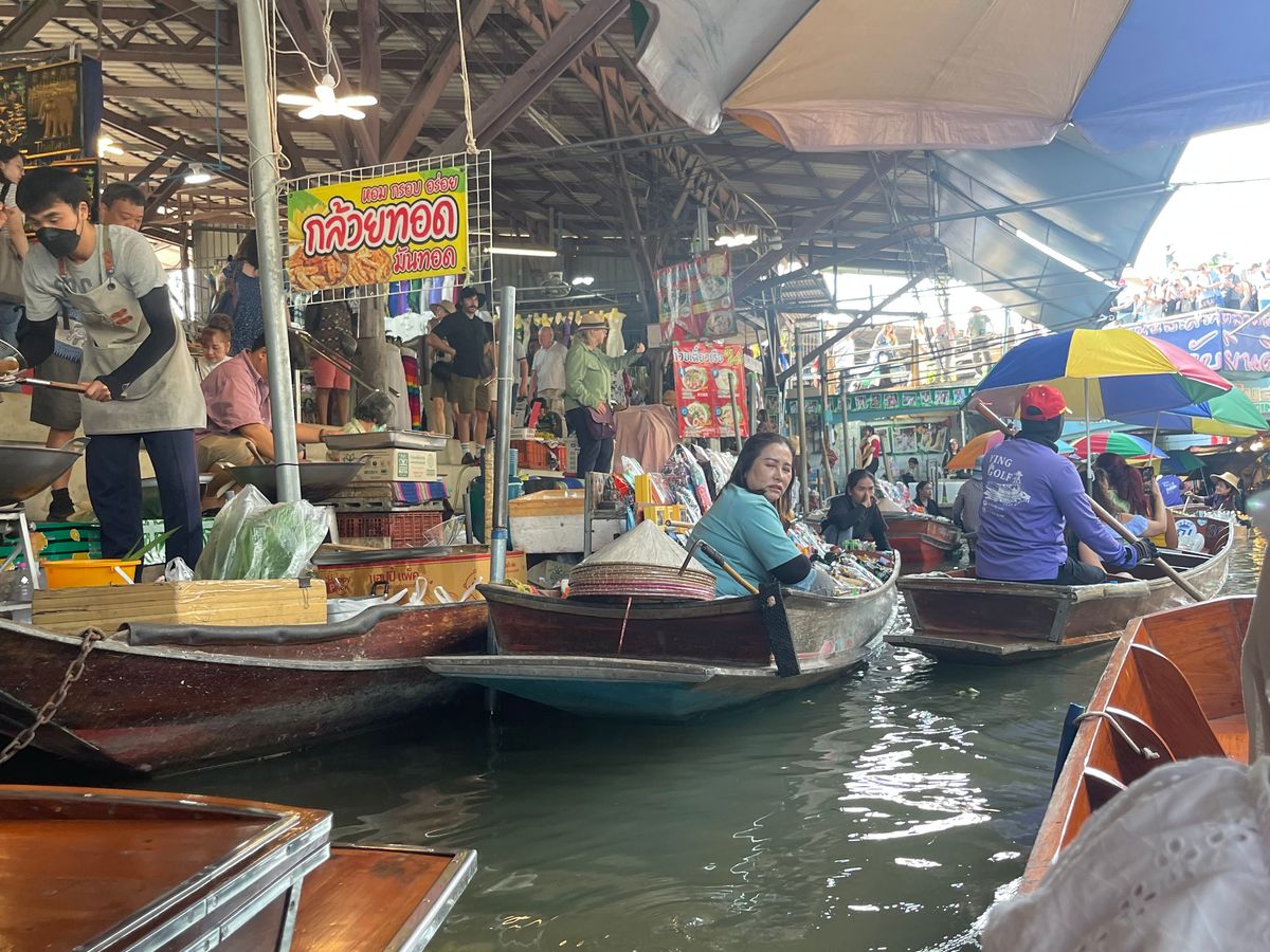 メークロン市場にも行けましたし、さらにそこを通る電車にも乗ることができました。電車側から、市場のギリギリのところを見ることができて面白かったです。