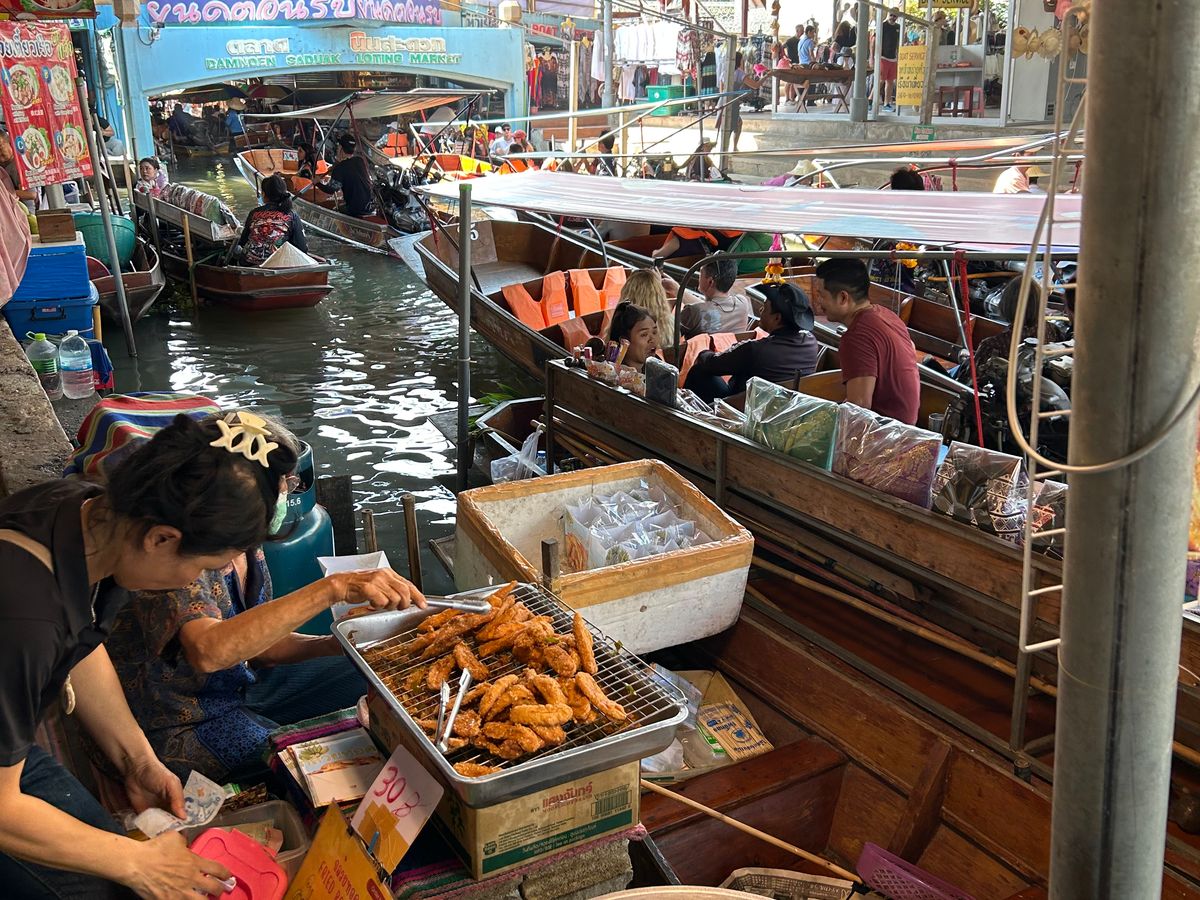 水上マーケットは手漕ぎボードに乗った方がおすすめです!あっという間に過ぎちゃうので、気になったものやお店は指差し必須です。