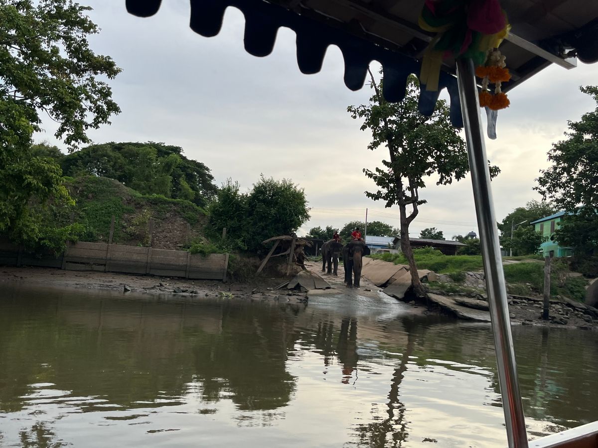 ゾウ村に水上ボートで行き、アユタヤから帰ってくる象を待ち、帰ってきた象が水浴びをしているところを間近で見て、バナナをあげられる体験はとても新鮮でした!また、水上ボートでの移動時間も長く、現地の方の暮らしも見えたのも良い経験でした。