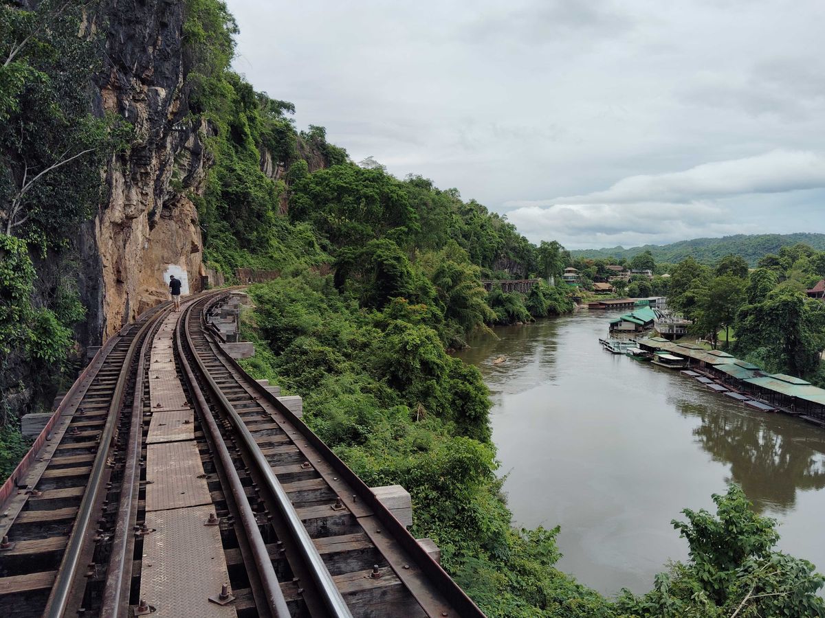 有名なクェー河の橋は、例の音楽を頭で演奏しながら元気よくわたりました。ちょっと野暮ったい中国系のお寺が残念でしたが、他の景色はタイの田舎ののどかな風景でした。