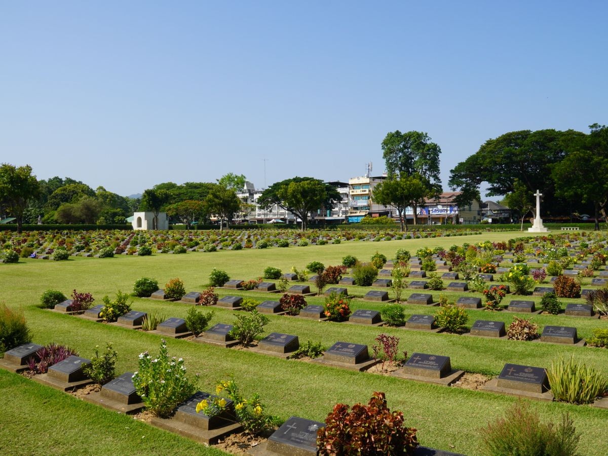 JEATH戦争博物館→連合国軍墓地→日本軍建立の慰霊碑→クウェー川鉄橋、そしてそこから泰緬鉄道に乗車してミャンマー方面へ。大自然の中でランチをいただき、バンコクへの帰路の途中で、有名な寺院にも寄り道。