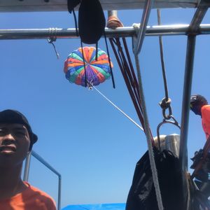滞在時間は4時間。ゆっくり海水浴をする時間はなく、まず午前中は別料金で、バナナボートとパラセーリングをしました。