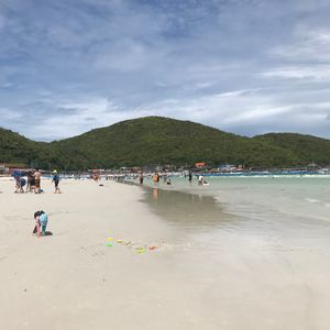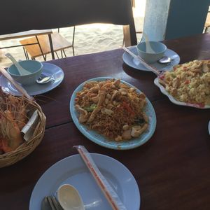 一方ラン島はまだ海も透き通っており砂浜もサラサラ、感激します。口コミにあるような中国人の団体も見かけましたが、マナーの悪い人はいませんでした。子どもたちは夢中で砂遊びや水遊びを楽しんでいました。さて食事ですが、シーフードは、エビと白身魚でした。美味しくいただきました。シーフード以外のものの品数のほうが多いですが、パッケージツアーの食事に過度な期待をする方が野暮です。波が高いこともあり、通常より1時間早く切り上げて島を出ました。シャワーは1人50バーツ、トイレは無料でした。ロッカーもありましたがガイドさんが貴重品以外は代わりに預かってくれました。1つ申し上げることがあるなら、島への移動にボートを使いますが、浅瀬の海を自力で歩いてボートまでいく必要があります。降りるときも同様で、海水に浸かりながら波打ち際を目指します。そのため太ももから下あたりはずぶ濡れです。子どもを連れ、大きな荷物を持ちながらのこの移動(特に海水浴後)は着替えた意味をなさずゲンナリしました。ボートから降りた後バスまでの砂浜の数メートルは当然徒歩です。砂だらけになりますがそれを洗う場所も時間もないので、砂だらけでバスに乗ります。オシャレして行くとえらい目に遭うと思います。(笑)