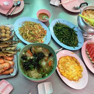 ランチでは2人では食べきれないほどのタイフードが出てきました。優しいスープにチャーハン、シーフード、ベジタブル…空心菜のソテーが、一番美味でした。