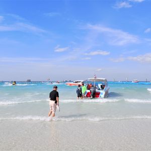 パタヤビーチから船に乗る時、海の中を少し歩いてから船に乗るので、ショートパンツがお薦めです。