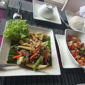 ごはんはシーフードとかもなくて春雨スープみたいな鍋と空芯菜炒めとパッタイでした