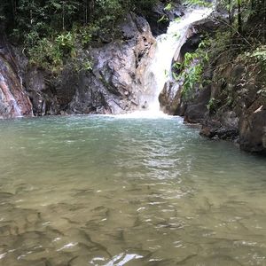 5. 滝で水遊びと聞いていたのですが、3〜4mくらいの小さな滝?と濁った池のようなものがありました。これは、少し森を散歩程度に考えればいいかも。