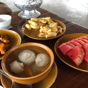 ジップラインが終わりそこの食堂でお昼ご飯、ミネラルウオーターが1本つき。タイの現地料理で屋台並みのおいしさでした。