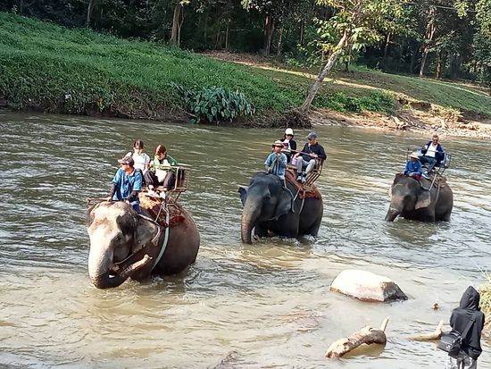 効率よく像乗り、水牛馬車、象さんのショー、ミャンマー&タイ山岳民族である首長族訪問、ランチそしてイカダ下りと盛り沢山な1日でした