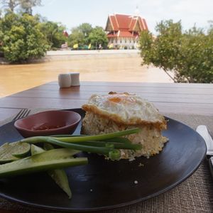昼食場所の川沿いのレストランは、絶好のロケーション。おやつのロッティサイマイは、1人分の試食ができました。(きちんとお店にお金を払ってくれるので、嫌な押し売りがなかったのもgood!)