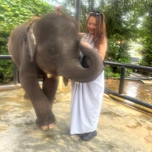象の池の中歩くのは人工的な庭の中の「体験」というか感じでしたが、子像との触れ合いはとても癒されました。