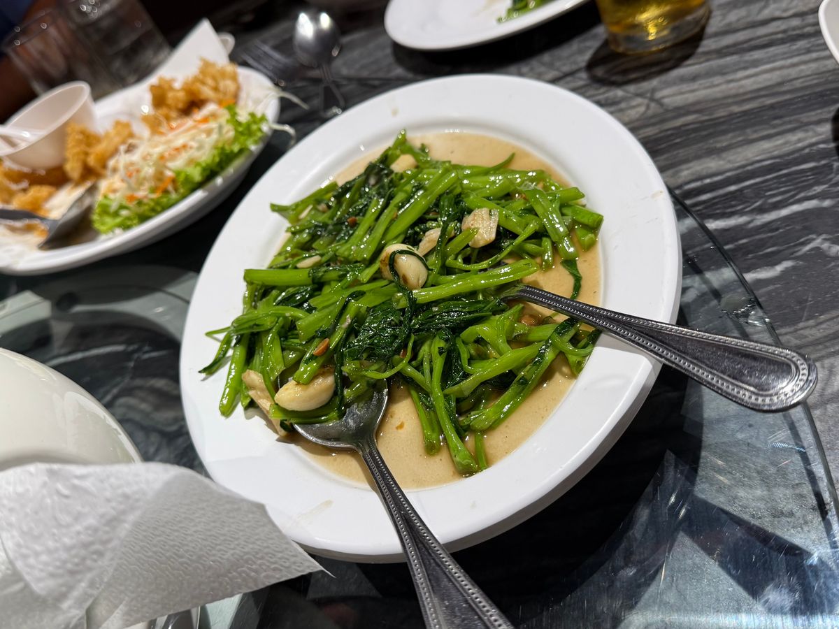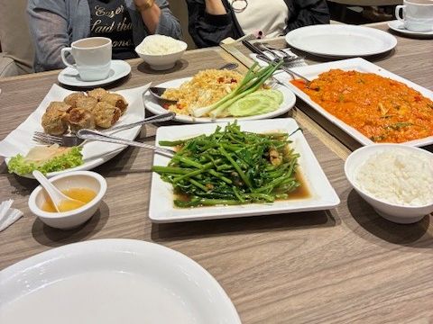 昨年はスラボーン店に行ったので、今年は駅近のエバンシー店にしてみました。そんなに混んではいなかったので、予約なくても入れたかも。でも予約があったのでスムーズに席に案内されました。炒飯と空芯菜炒めの量が少し多すぎました。4人でしたがどれもSサイズで良かったかと思います。どの料理もお味はとてもおいしいく間違い無いです。スラボーン店は賑やかな感じでしたが、こちらのお店は静かで上品な感じでした。