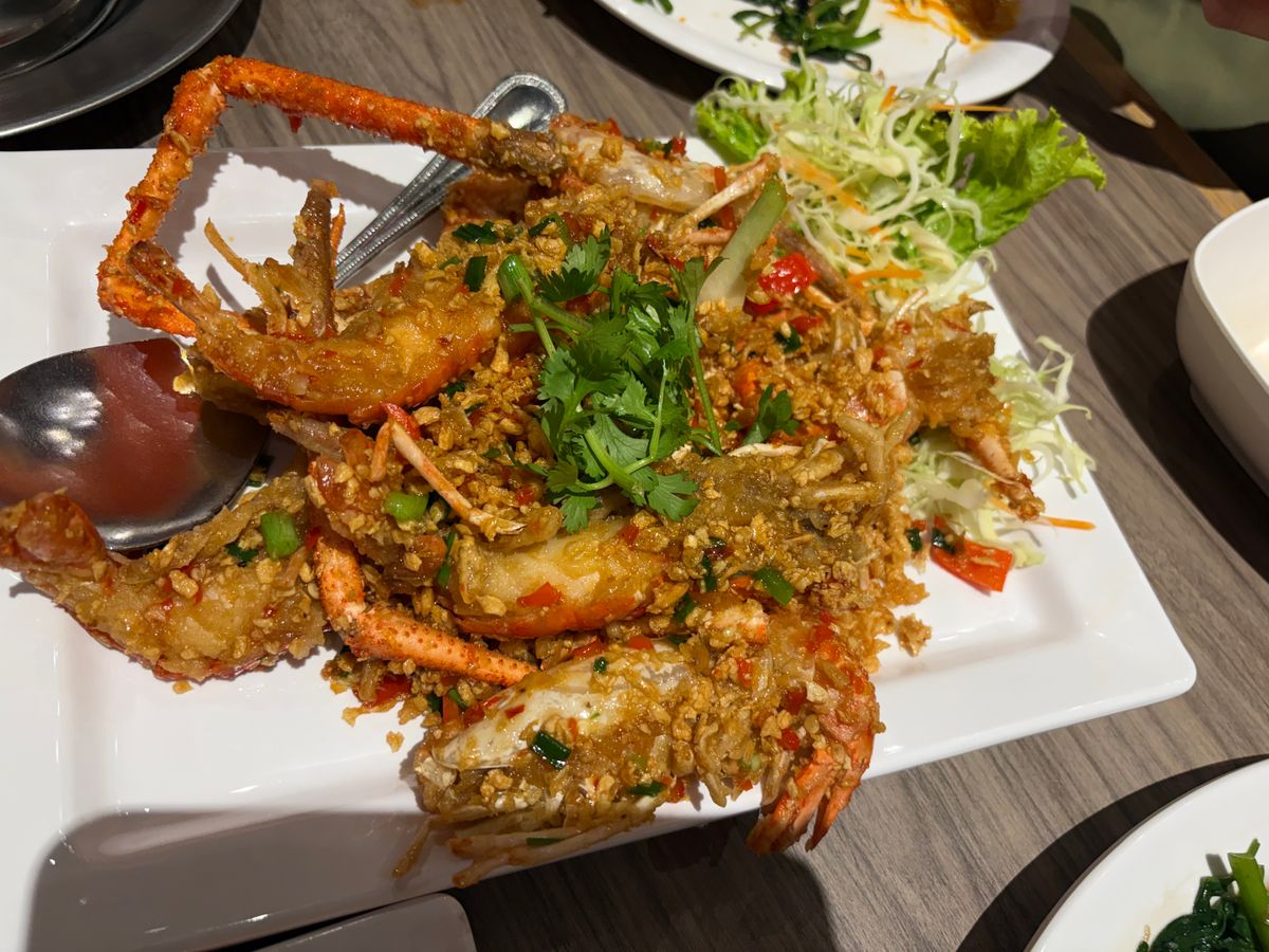予約時間の5分前に到着。待っている人が沢山いました。バウチャーを見せるとそのまま予約席に案内されました。料理は蟹をほぐしたプーパッポンとカニチャーハンと川エビの蒸した物をいずれもSサイズで頼みました。女性2人で丁度良かったです。プーパッポンは日本でたべる物より甘かったです、おそらくこれが本場の味なのかなと。他にも食べたい物がありましたが大人数でこないと残念ながら無理そうです。