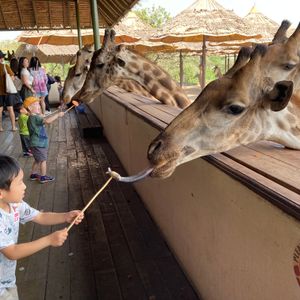 キリンの餌やりは、キリンの数と近さにびっくりしました‼︎日本ではできない体験で楽しかったです😊