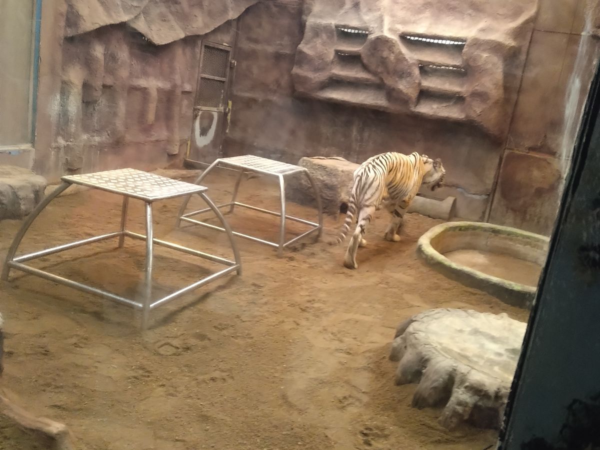 現在、タイガーのショーは、ガラス越しの小部屋で行われていて、あまり迫力がないです。
